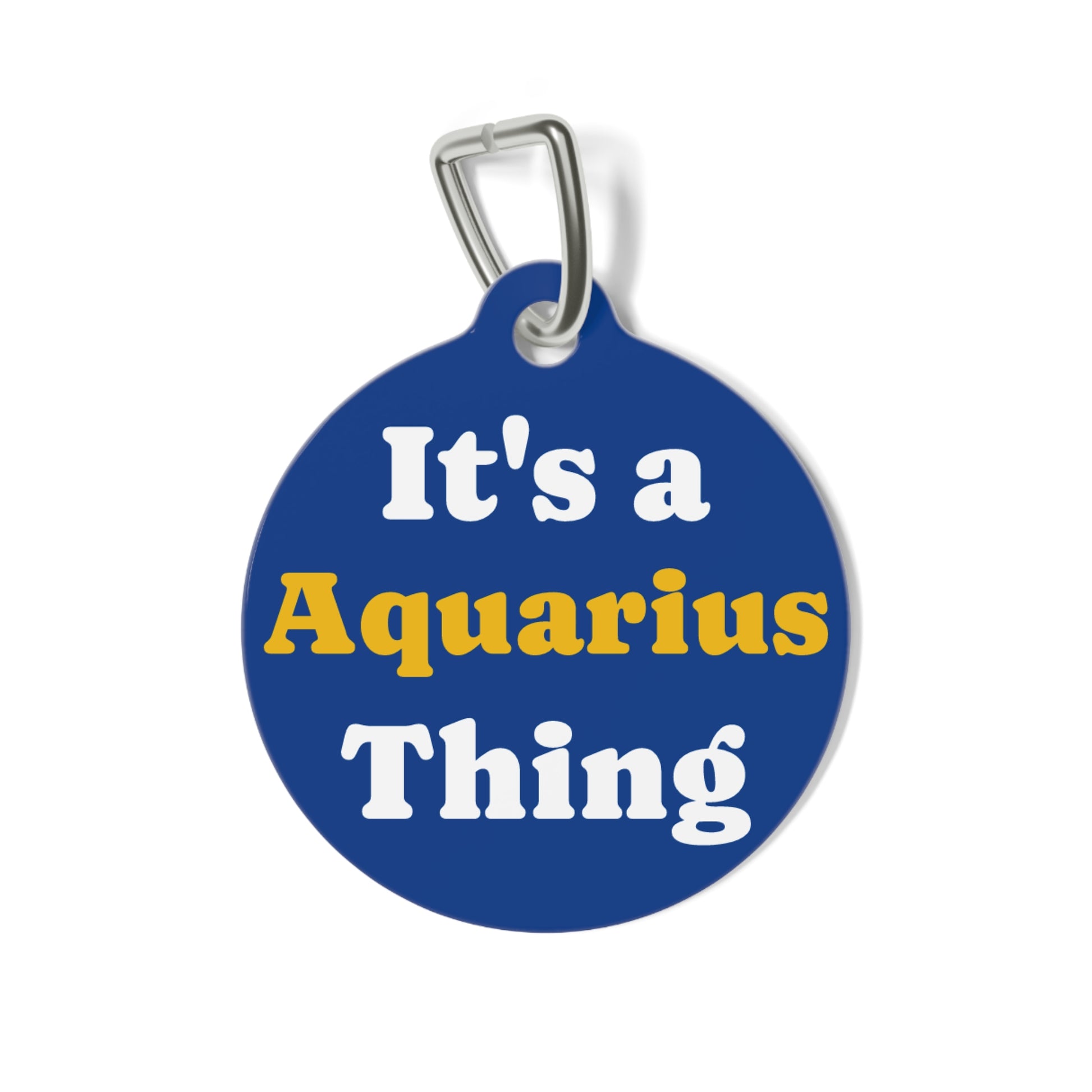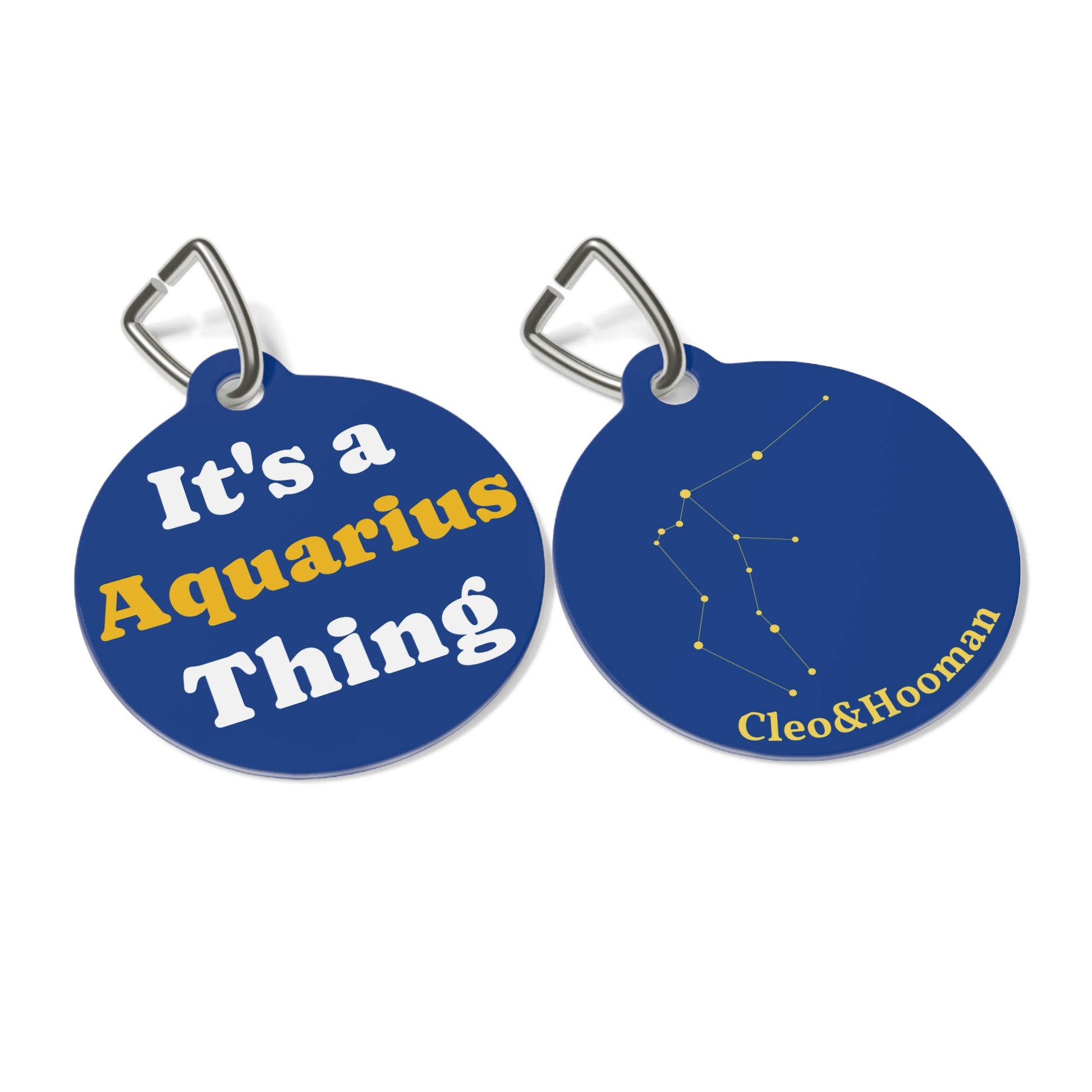 Featuring Aquarius’ constellation on one side and the playful phrase “It’s an Aquarius Thing” on the other, this tag captures their innovative, fun-loving energy.