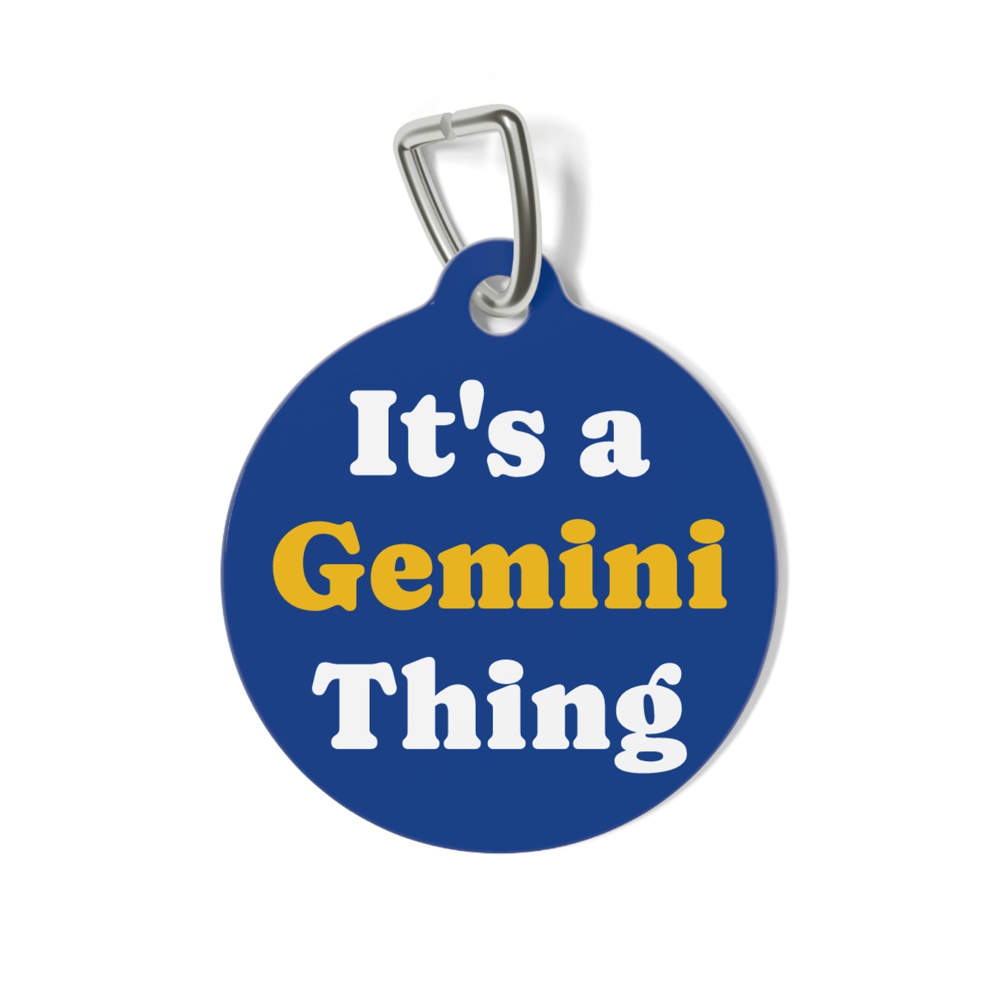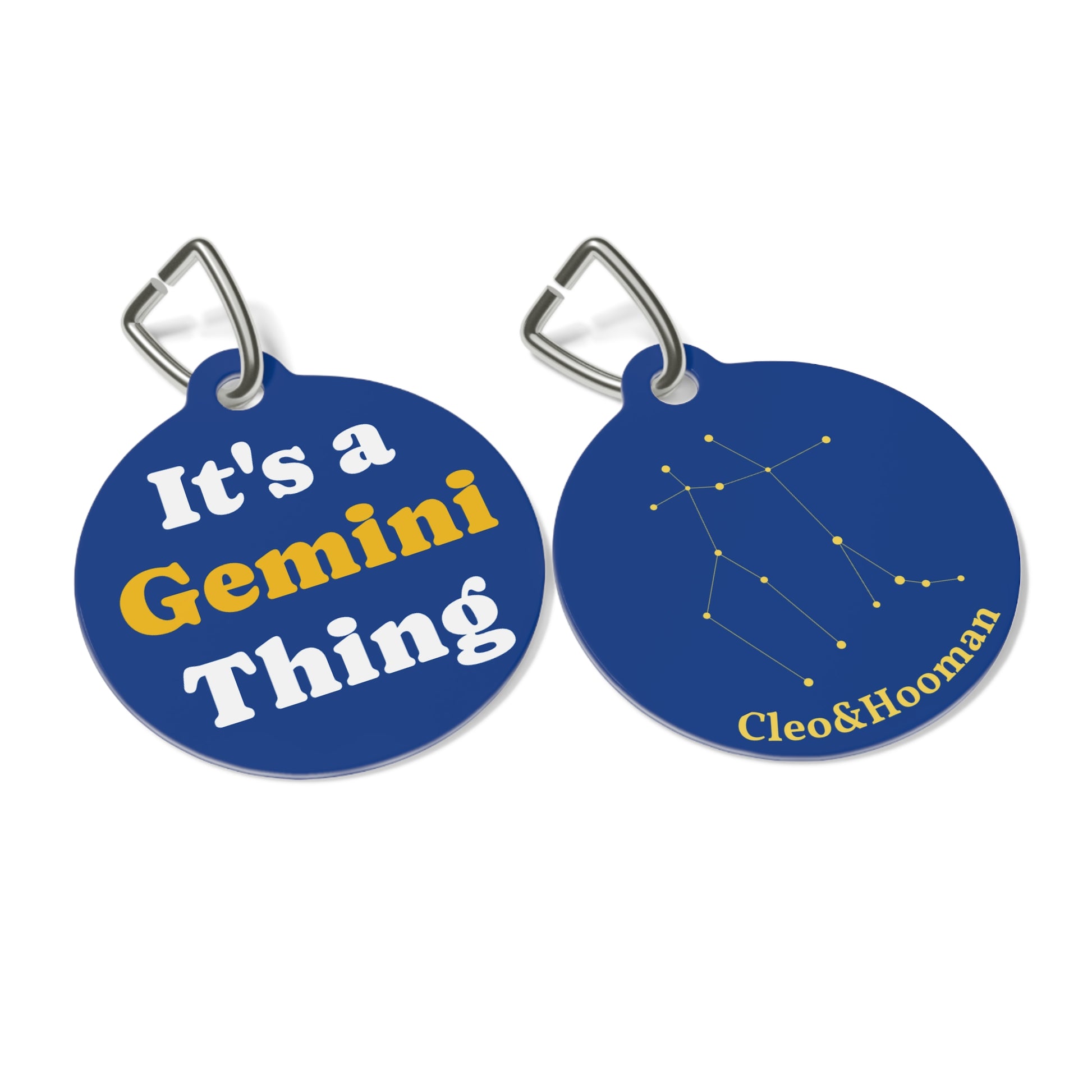 Featuring Gemini’s constellation on one side and the fun phrase “It’s a Gemini Thing” on the other, this tag celebrates your pup’s playful, chatty, and adaptable nature. Whether they’re running circles around you or showing off their curious side, this tag captures the essence of their cosmic charisma.