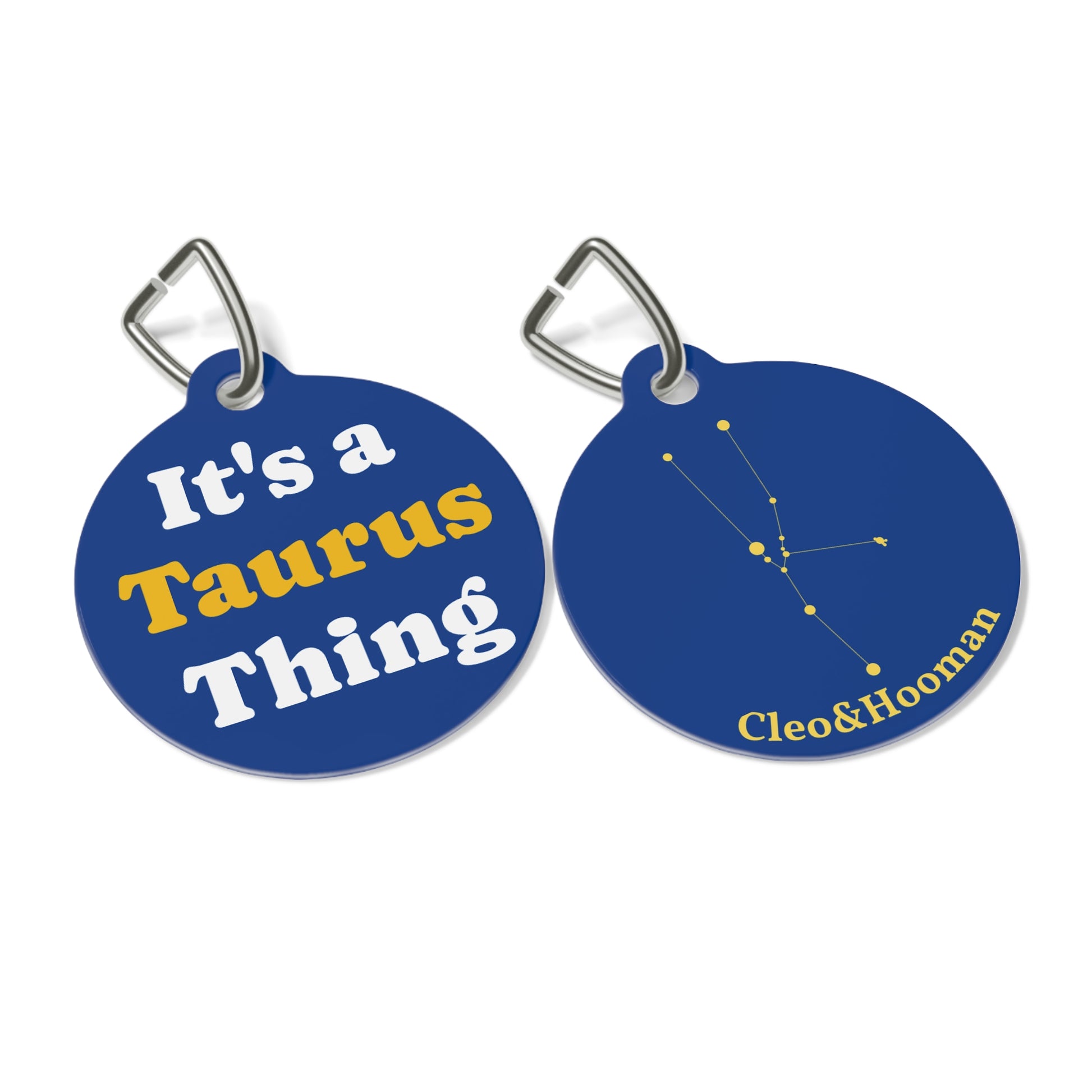 Featuring Taurus’ constellation on one side and the playful phrase “It’s a Taurus Thing” on the other, this tag shows off your pup’s grounded yet luxurious vibe. Whether they’re lounging in the sun or standing strong for their hooman, this tag keeps their cosmic energy close to home.